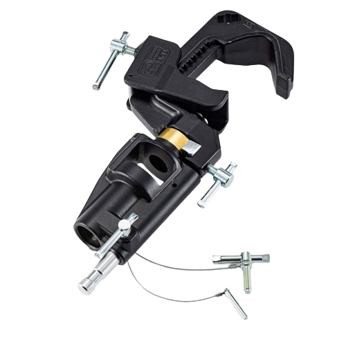 La fonction pivotante permet de bien diriger l’éclairage là où il est requis. La pince est équipée d’un câble de sécurité avec goupille pour la fixation Junior et d’une vis papillon supplémentaire pour sécuriser encore plus la fixation au besoin.