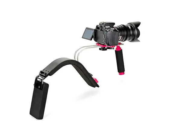 L'Épaulière DSLR est un stabilisateur d'épaule ergonomique, idéal pour les appareils photo reflex, hybrides numériques et caméras vidéo de petite taille. Sa conception permet une utilisation rapide et confortable, avec une crosse d'épaule qui assure une prise en main stable. La poignée unique de l'épaulière et son contrepoid libèrent une main, facilitant le contrôle du zoom et du focus mais aussi d' avoir les mains libres pour faire autre chose. Ce stabilisateur offre une grande flexibilité : la hauteur du support de caméra et la distance par rapport à l'épaulière sont entièrement ajustables pour s'adapter à différents équipements et préférences personnelles. De plus, la poignée est adaptable pour les gauchers comme pour les droitiers. Le contrepoids à l'arrière équilibre le poids de la caméra, minimise la fatigue lors de prises de vue longues et en garantit une stabilité accrue.