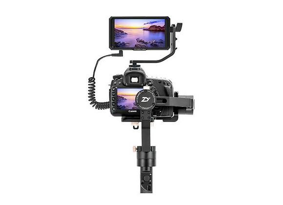 Moniteur 5” qui se fixe facilement directement sur la griffe flash d’un boîtier via le bras pivotable inclus ou en vis Kodak 1/4" avec un mini / petit bras magique.