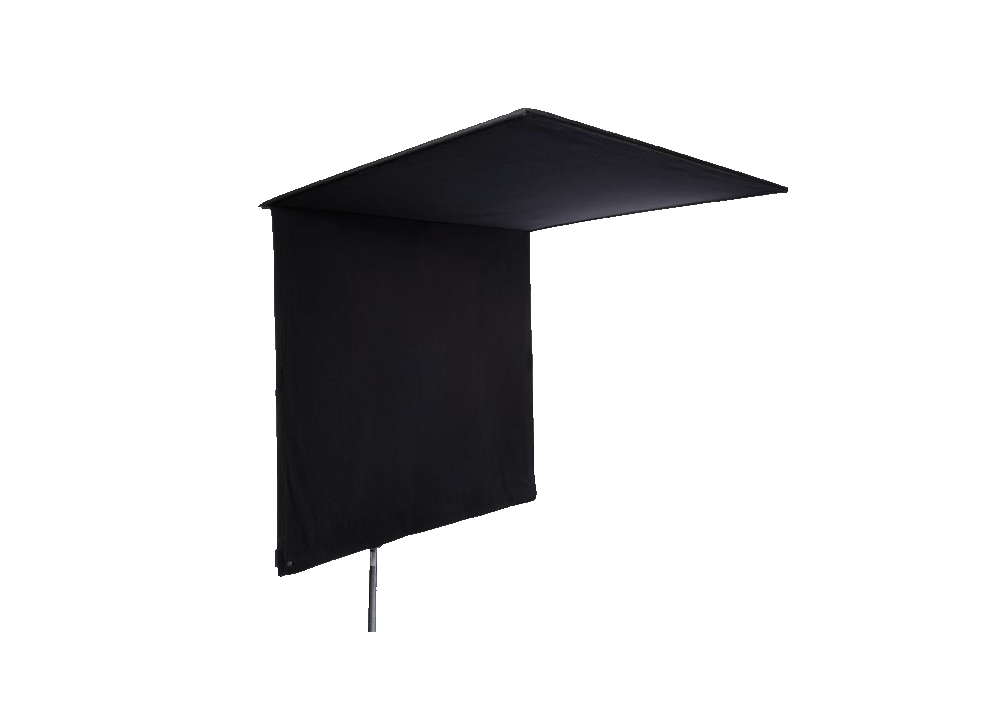 Le Floppy est un drapeau qui possède un tissu noir qui peut se déplier pour doubler la surface d’obstruction. Il peut être utilisé pour masquer le pied lumière sur lequel il repose ou installé au-dessus du retour cam pour couper la lumière du soleil en extérieur par exemple.