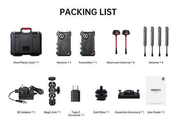 Le Hollyland Cosmo C1 est un système de transmission vidéo HF capable de transmettre des flux 1080p60 via HDMI/SDI jusqu’à 300m en visibilité directe, le tout à une faible latence de 40 ms.