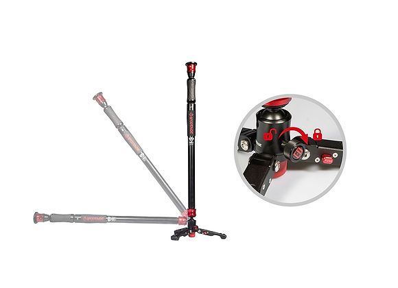 Ballhead intégrée au tripod, permet d’ajuster facilement la position du monopode une fois posé au sol