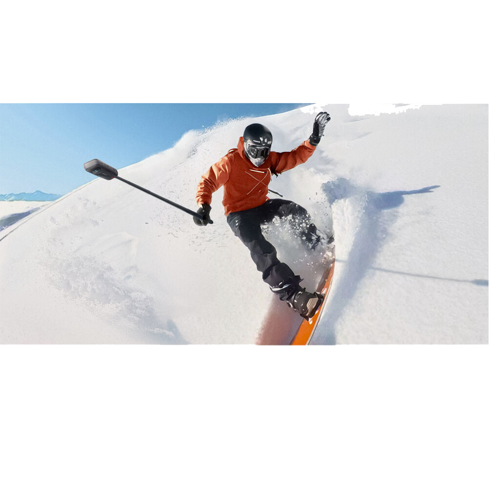 L’Insta360 X5 est étanche jusqu’à 15 mètres sans caisson, répondant parfaitement aux exigences de la prise de vue en action ou en environnement humide. Elle intègre une batterie de 2 400 mAh, offrant une autonomie prolongée et une charge rapide pour enchaîner les sessions sans interruption. La caméra est compatible avec la célèbre perche Insta360 invisible, permettant de capturer des plans dynamiques et immersifs sans élément visible dans le champ.