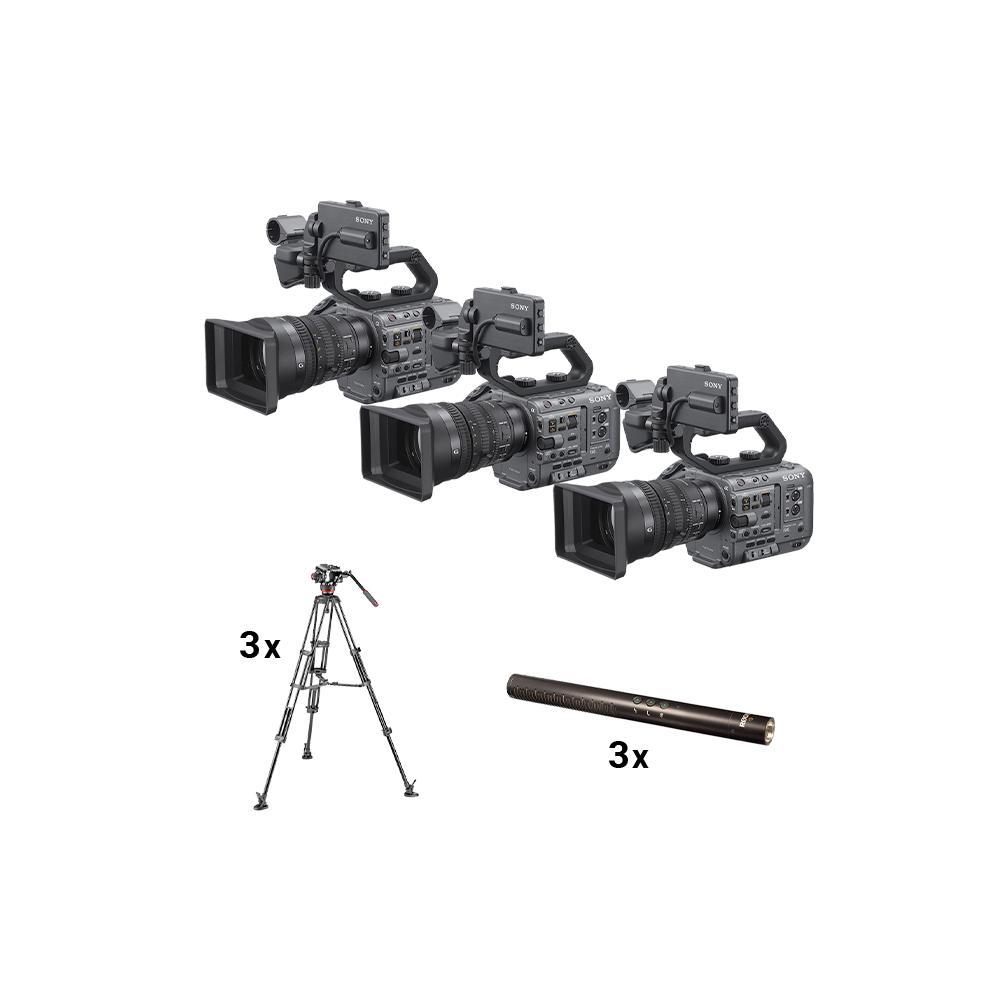 KIT CAPTATION 4K  Full Frame avec Sony Fx6. Chaque caméra vient avec un objectif zoom, plusieurs batteries, une carte SD, un trépied et un micro.