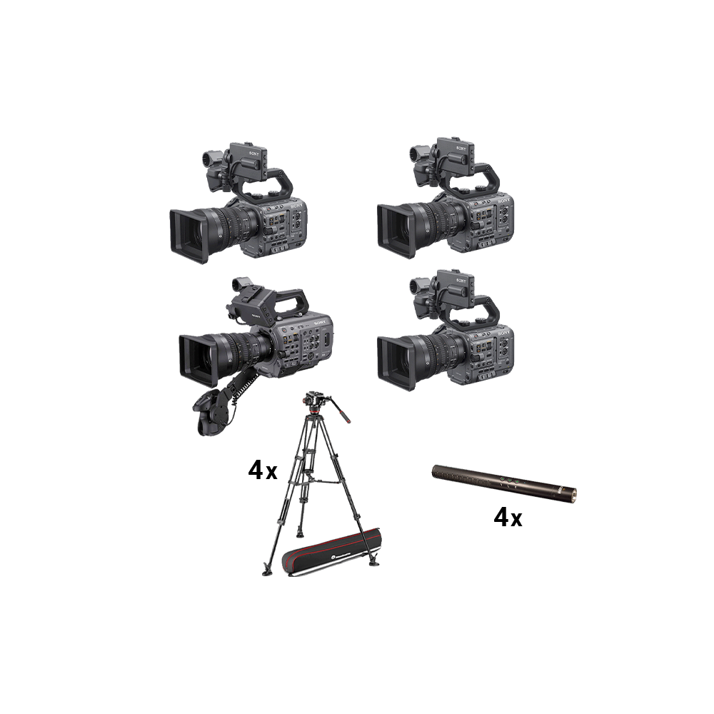KIT CAPTATION 4K  Full Frame avec Sony Fx6. Chaque caméra vient avec un objectif zoom, plusieurs batteries, une carte SD, un trépied et un micro.