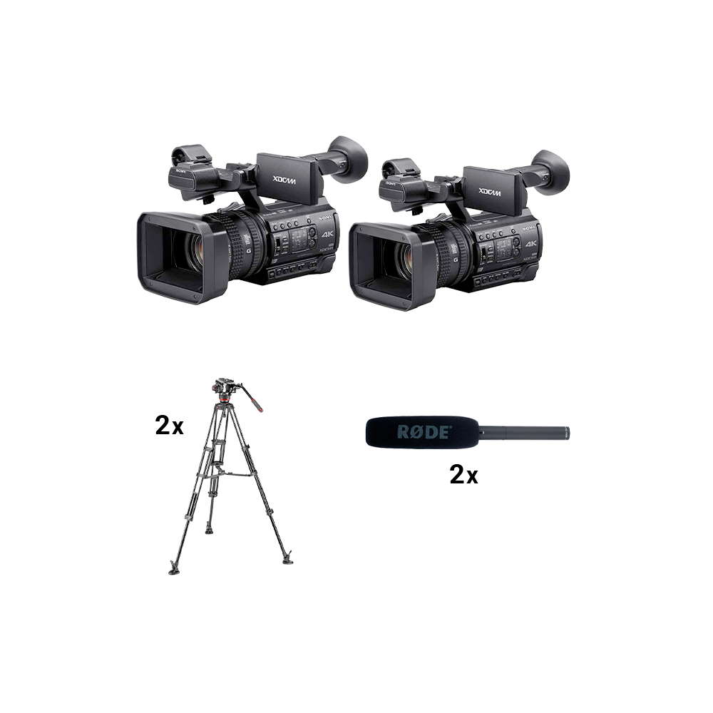 KIT CAPTATION 4K avec Sony Z150, Fs5 et Fs7 en fonction du nombre de caméra. Chaque caméra vient avec un objectif zoom, plusieurs batteries, une carte SD, un trépied et un micro.