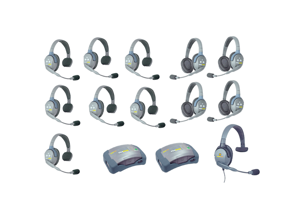 Système intercom très simple d’utilisation et fiable sur une portée allant jusqu’à 250m. Chaque casque est loué avec deux batteries pour une autonomie de 5 heures par batterie.