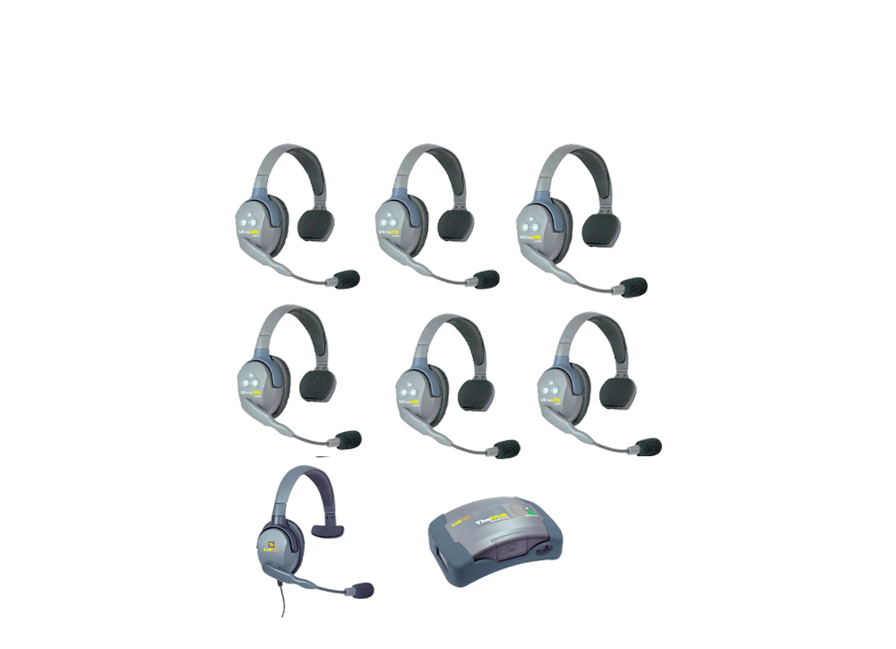 Système intercom très simple d’utilisation et fiable sur une portée allant jusqu’à 250m. Chaque casque est loué avec deux batteries pour une autonomie de 5 heures par batterie.