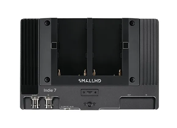 Pour une utilisation flexible sur le terrain, l'Indie 7 peut être alimenté par des batteries NP-F ou V-Lock, avec un adaptateur disponible sur demande, et il est fourni avec une cage robuste pour une accessoirisation facile et sécurisée.